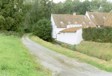 Molen: Huldenberg (Vl.-Brab.), Molenhof, Molen van Huldenberg - watermolen met (verwijderd) houten onderslagrad