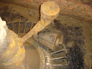 De houten maalinrichting is vrijwel intact bewaard.