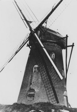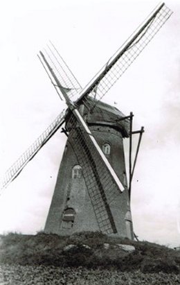 Oorspronkelijk stond hier een houten korenwindmolen. Deze bestond al in 1368. Hij behoorde als banmolen bij de heerlijkheid van Vlaagt (cf. Abeelstraat nr. 37), die in het bezit van de Ridders van Malta was.