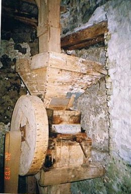 - Benedenverdieping, vroegere kollergang verdwenen, thans een mechanische maalderij met één koppel kunststenen. Haverpletter aangedreven door elektromotor. Onder de molenvloer zijn nog restanten van de teerlingen van de houten staakmolen bewaard.