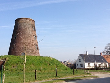 G'hadt dan nog langs de grote Oostende baan, bij café den Uitl, een houten meulen die verzet werd achter de Moerse kalsijde. Ge moeet weten dat de Moerdijk ligt tussen Eernegem en Moere.
