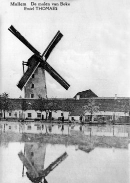 De Molen te Beke is de schoone nieuwe steenen molen op galerij, bewoond en gebruikt door Kamiel Tomas, die de inwoners van Mulhem en omliggende van 't noodige meel voorziet.