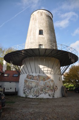 Van deze korenmolen zijn recentelijk de buitenwanden gekaleid.