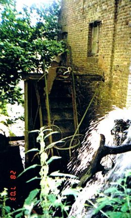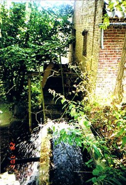 De molen Er is een smal metalen bovenslagrad. De watergoot is neergestort.