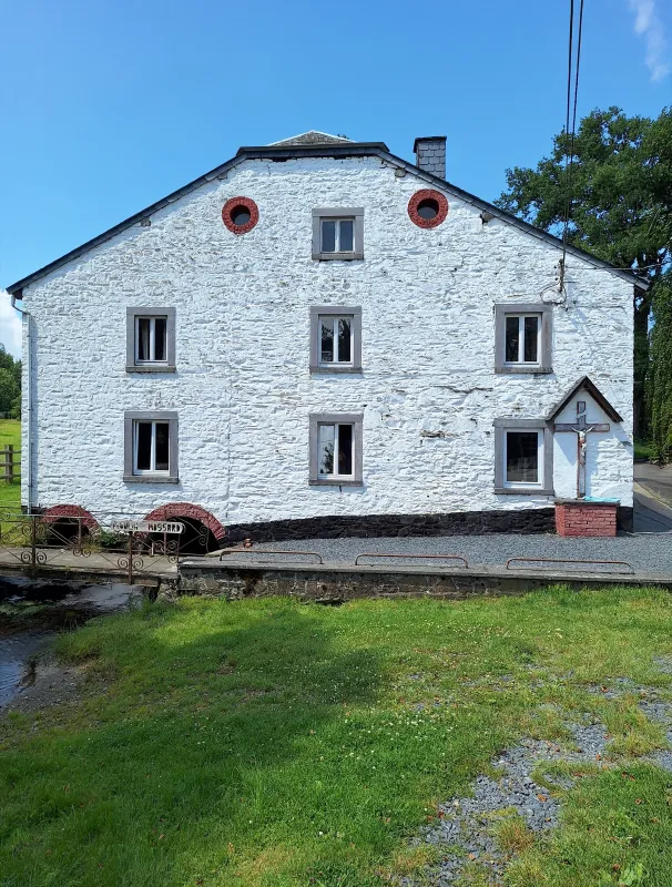 Ce moulin, qui n'est plus en activité depuis 1956, est un des rares exemples, dans la région, de moulin ayant encore ses deux roues. Le corps de logis a été transformé aprés l'arrivée des Massart en 1892, avec l'ajout de porcheries et d'étables. Le dernier meunier était Emile Massard (1873-1958) marié avec Marie-Mélanie Evrard (1873-1955).