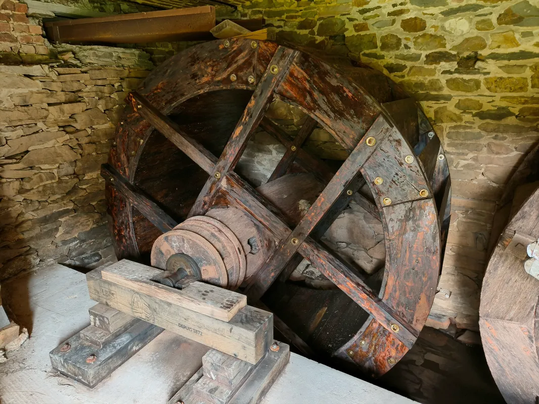 - Twee ingebouwde houten bovenslagraderen, diameter 2,50 m en breedte 1,25 m