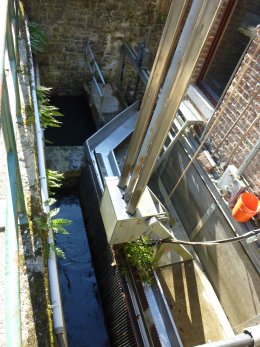 Oorspronkelijk was de molen met een klassiek houten waterrad uitgerust, dat later werd vervangen door een turbine. Electrabel verving deze rond 2000 door een nieuwe Kaplanturbine, maar helaas is de aandrijving van het gaande werk (vier steenkoppels) er niet mogelijk door geworden.