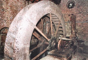 Sur la rive droite de l'Aisne, un petit bâtiment de briques abrite la roue et sa machinerie.