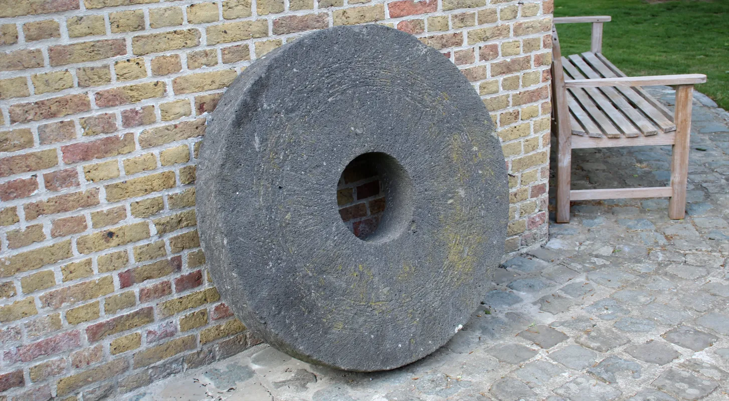 Schuin achter het huis uit 1746 staat een bakstenen rosmolen, waarvan het grondplan een langwerpige achtkant tekent. Op een baksteen boven een ingang staat het jaartal 1856: erboven bevindt zich een tegeltje als waterlijst. Als bouwmateriaal werd gele zandsteen van 21,5-22 x 10-11 x 6 cm gebruikt. Er zijn een ingang en drie luikopeningen elk met een houten latei en twee duimijzers. Een gedeelte van het bakstenen looppad is nog aanwezig.