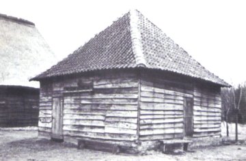 - Vierzijdig houten gebouw op bakstenen voet