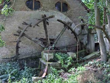- Gerenoveerd gebouw, vervallen waterrad; waterloop omgelegd