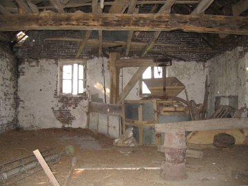 De molen heeft herstelling nodig. De turbine, een koppel molenstenen en ander binnenwerk zijn nog aanwezig.