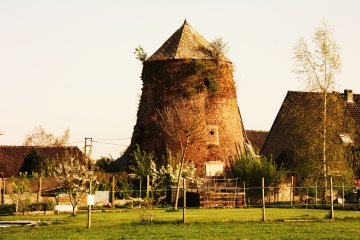 De piramidevormige kap is niet de originele molenkap. Er is geen binnenwerk meer aanwezig.