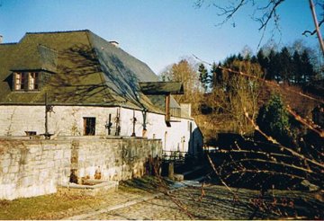 L'ancien moulin, jadis propriété de l'abbaye de Saint-Gérard, est un bâtiment classique en L, en moellons de calcaire réglé, élevé en 1744, mais reconstruit dans les années 1970.