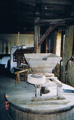- Vroeger ook zaagmolen. Natuurstenen gewit gebouw, in de lengterichting van de waterloop