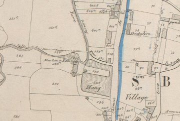 Dans l'Atlas cadastral Popp (ca. 1860): Section A 389 - Moulin à farine à eau; propriétaire: Dauchot, Marie-Thérèse, épouse Meynsbrugghen, Jules, meunier, Hellebecq.