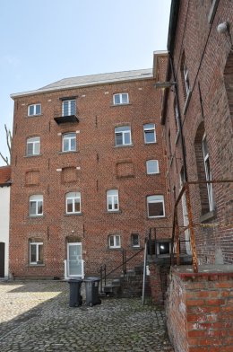 Molen: Hoegaarden (Vl.-Brab.), Grote Molen - turbinewatermolen, thans woonblok met kleine waterkrachtcentrale