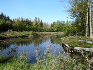 In 1997 maakte Jerom Ghijsens samen met buurman Siegfried Claassen op deze plaats een nieuwe brug van "treinbilzen". Met vergunning maakte hij een betonnen overloopgoot, een afdamming met valklep en een sluisje. Dit was om te beletten dat de visvijver door zijn lagere grondwaterstand leegliep. Die lage waterstand heeft o.m. te maken met het waterwingebied rond de Herk. De Vlaams Watermaatschappij boorde in de jaren 1990 te Hoenshoven een dieptepomp van 60 meter. Deze trok veel water naar zich toe. Het blijkt thans geen goede bron meer te zijn.
