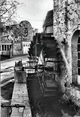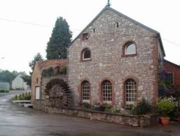 Deze watermolen werd pas in 1855 opgericht als ijzersmeedmolen (atelier Pirson). Er bestaat nog een prentkaart waarop we zien hoe het waterrad een slijpschijf aandrijft.