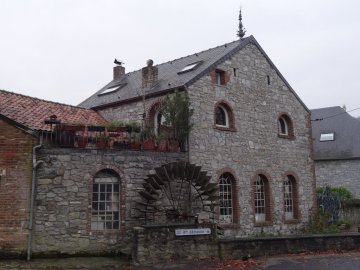 Later werd hij omgevormd in een korenmolen. Het groot metalen onderslagrad draait in een beek die parallel met de straat loopt. Het natuurstenen molengebouw werd gerenoveerd en verkeert in goede staat.