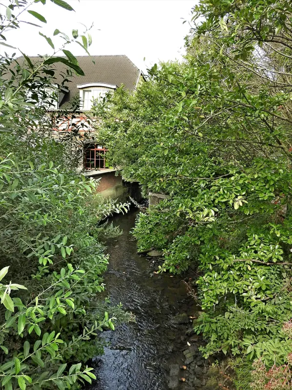 "Il existe (aussi) un moulin à eau à moudre des grains et à deux tournans (grondwiel en kamwiel). Situé sur un ruisseau, dit Meulebeke, ils ne peuvent tourner à moins qu'il n'y ait surabondance d'eau, qui arrive rarement et encore il serait dangereux vu le mauvais était du bâtiment. Il a considéré le peu de distance entre le moulin de Impe placé avant le moulin ci-dessus parlé. L'expert a fixé l'évaluation de l'un et de l'autre des tournans surquoi déduisant un tiers de réparation (340-114=226)".