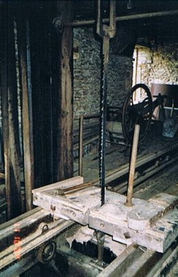 L’intérieur du moulin conserve, en mémoire du passé, la machinerie qui a servi à actionner la scie à cadre dite «le Haut Fers» pendant plus de cent ans.