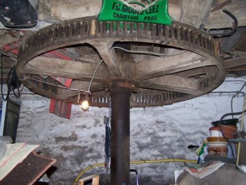 Après avoir enlevé la roue, le moulin a fonctionné avec un moteur à vapeur, puis un diesel. Uniquement pour la nourriture pour animaux.