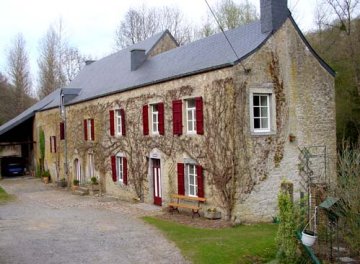 Deze turbinewatermolen is overheen de Hermeton gebouwd. De molen zelf dateert uit 1791. In 1813 werd het minder diepe woonhuis gebouwd. De molen werd in de jaren 1970 stilgelegd. In de jaren 1980 volgde een leegstand en verkrotting. Een nieuwe private eigenaar kocht het domein aan en renoveerde de gebouwen, met o.m. een vernieuwd dak.