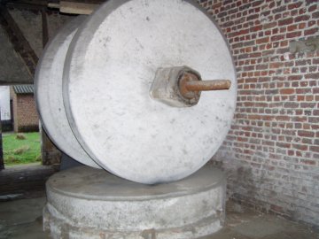 In het middendeel staat nog steeds een kollergang die door paarden werd aangedreven om olie te persen. De imposante kollergang bestaat uit twee arduinen lopers en een arduinen ligger. De lopers hebben een diameter van 2,15 m en een dikte van 30 cm. De ligger met rand meet 2,20 m en is eveneens 30 cm dik. Die ligt op een gemetst doodsbed van 20 cm. De horizontale houten as door de lopers heeft een diameter van 25 cm, de staande as 30 cm. Het steenwiel is niet meer aanwezig. Het gaanpad voor het paard in kasseisteen bestaat nog gedeeltelijk en heeft een buitendiameter van 8 meter. De slagbank en het drijfmechanisme zijn verdwenen. Enkel de plaats van de schouw van de vuring is nog zichtbaar.