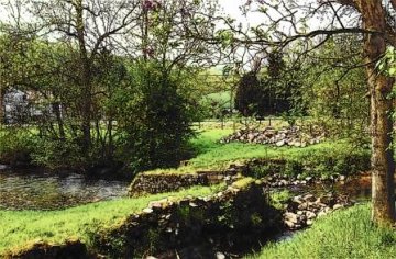 Glissiére du bras de décharge démantelée au début des années 1980 et se présentant en 2003 comme une petite cascade ne constituant plus un obstacle aux mouvements des poissons. Ecoulement trés limité par le bief de l'ancien moulin où subsiste un petit déversoir avec une dénivellation Dh= 0,9 m.
