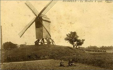 - Ferrariskaart (ca. 1775) als een staakmolen met een zeer opvallende molenberg en met de benaming "Moulin d'Herzele"