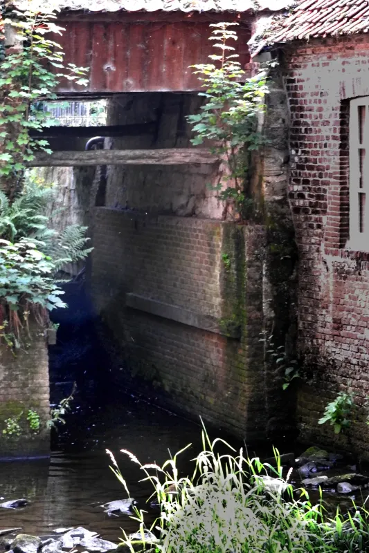 Het gebouw staat overheen de Molenbeek: aan de ene zijde was de korenmolen, aan de andere zijde de oliemolen. In 1896 werd een stoommachine geplaatst, maar er werd ook nog met waterkracht gemalen. De stoommachine werd in 1928 vervangen door een benzinemotor.