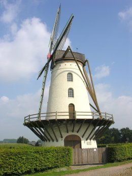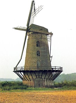 - Wildermolen in Appelterre-Eichem (Ninove): staakmolen met open voet. Eigenaar: Stad Ninove