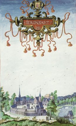 "Album namurois du Prince de Croy" (gouache de l'abbaye de Iéronsart en 1605 par l'artiste Adrien de Montigny)