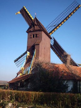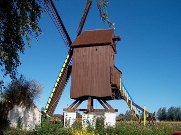 - Eerder kleine staakmolen op hoge teerlingen, zadeldak.