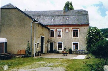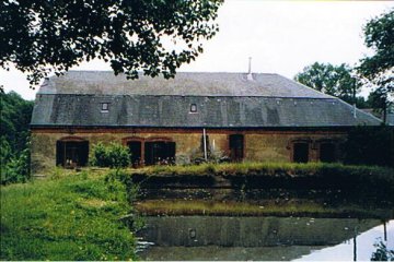 On trouve les premiéres traces du moulin dés le XVIIéme siécle. Des documents mentionnent qu'il appartenait au Roi et soumis à la banalité. Il fut reconstruit en 1776 par l'architecte Burton. Sur la façade du logis on découvre l'aigle bicéphale autrichien marqué des initiales M.T. (Marie-Thérése d'Autriche). A cette époque, la roue se trouvait vraissemblablement contre le mur extérieur gauche. Le mécanisme se trouvant dans une piéce derriére la cuisine. Vers 1860, il reçoit une deuxiéme meule, ainsi qu'une scierie. A la seconde moitié du XIXéme siécle, une extension du bâtiment recouvre la roue. C'est à cette même époque que la grange en équerre est construite. En 1880, une deuxiéme grange est consruite derriére la premiére. Un étang de retenue alimente le moulin via un canal. Bien qu'ayant cessé ses activités en 1968, il est toujours en état de fonctionner.