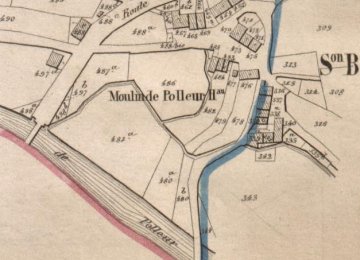 Volgens de Kadastrale Atlas P.-C. Popp (ca. 1860) was de "moulin à eau à farine" op sectie B 341 toen in het bezit van Grégoire Wathelet, menuisier, Polleur.