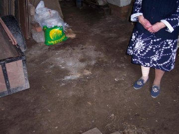 In een naastliggend vertrek van 8 x 4 m bevindt zich een vloerplaat van 1 x 2 m , rechthoekig met op de vier hoeken een cirkelvormige 15 cm diameter afprenting (van 4 poten ?), in het midden bevindt zich een