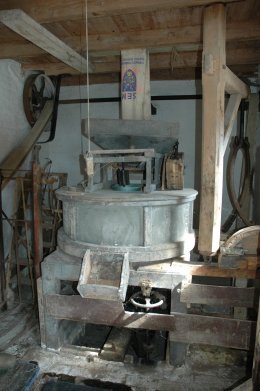 - Maalstoel met gietijzeren aandrijving, galg, slijpsteen
