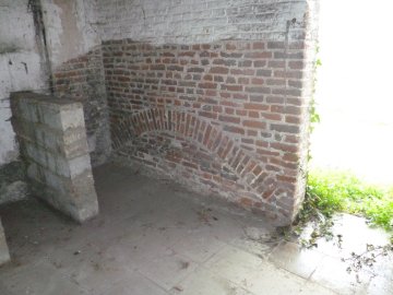 In 2008 waren er nog resten van achter aangebouwd L-vormig bakstenen landelijk bedrijfsgebouw uit de tweede helft van de 19de eeuw, vroeger onderdeel van de grote hoeve met brouwerij, stokerij en maalderij van Gustave Rullens gelegen hoek Abdijstraat. Achterste gedeelte, thans opslagplaats, van zes traveeën met bakstenen troggewelven tussen ijzeren liggers en met in de vier wanden sporen van gedichte kleine rondboogvensters. Vroeger zadeldak verdwenen door storm begin jaren 1990 en vervangen door plat dak.