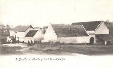 Deze korenwatermolen dateert uit de 17de eeuw en behoorde toe aan de abdij van Gembloux. Het huidig gebouw is 19de-eeuws en is thans ingericht als woning. Zowel het binnenwerk en het overdekt bovenslagrad zijn verdwenen en de spaarvijver is gedempt.