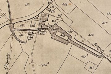 Op de Kadastrale Atlas van P.-C. Popp (ca. 1860) vinden we de "moulin à eau à farine" op sectie A450a in het bezit van Dufour, Julien, brasseur, Buvrinnes.