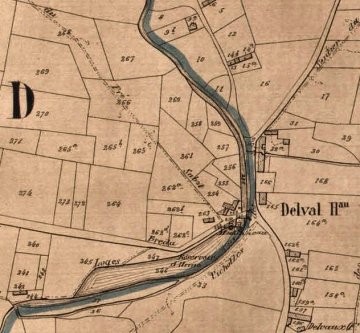 La position du moulin, placé longitudinalement par rapport au cours d'eau, semble renvoyer à une alimentation de type dérivation.