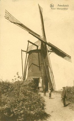 De abdij van Postel liet de standaardmolen in 1770 verplaatsen naar de Wampenberg. We zien hem al op deze standplaats op de Ferrariskaart (ca. 1775), met het bruin symbool van een standaardmolen op teerlingen en met de benaming "Moulin d'Arendonck".