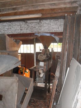 De technische inrichting van de graanmolen is nog vrijwel intact. De twee maalstoelen werden aanvankelijk aangedreven door een paardenmanege: de aanhechtingsflens van de drijfas en het kransstuk zijn nog aanwezig. De vier trekschoren zijn verwijderd. Later gebeurde de aandrijving door armgas en laatst met electriciteit. Verder is er nog een haverpletter met drijfriem en een builder.