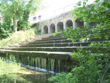 Au confluent de la Trouille et de la Wampe, ce pont-barrage partiellement envahi par la végétation est un vestige de l'ancien moulin domanial attesté dès 1192.