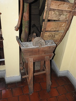Het wiel diende om te karnen (nog aanwezige karnton) en te slijpen (nog aanwezige slijpsteen).