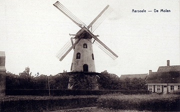 In de Gazette van Gend van 18 december 1823 en van 1 januari 1824 verscheen de volgende verkoopsadvertentie: "Openbaerlyk te koopen tot Aerseele een schoon Woonhuys (...) en Olie-wind-molen, alles onlangs uyt den grond nieuw-gebouwd in steen en panne, (...) gestaen en gelegen te Aerseele, dicht aen het dorp en aen de steenweg leydende van Deynse nae Thielt". Verblijf op 24 december 1823 in het Wethuys op de plaats van Aarsele. Zich wenden tot notaris van den Driessche te Aarsele of dhr. Mulle, "agent van affairens" te Dentergem.