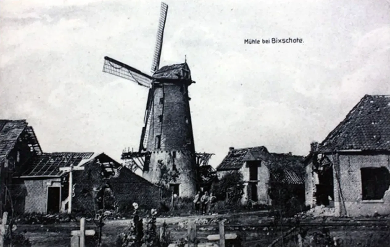 Duitse prentkaart met als gedrukt opschrift Mühle bei Bixschote (coll. Norbert Raes, Heule)