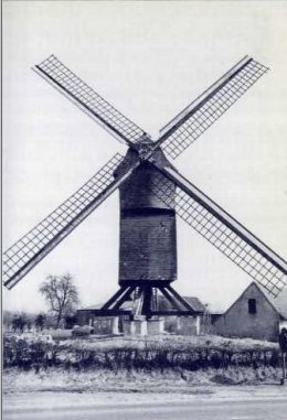 "il existe (dans la commune d'Oosterzele) deux moulins à vent, tous deux construits en bois servant à moudre du grain. Ils sont situés tous les deux sur la grande route de Gand à Grammont. Le 1er appartenant à Marie Van der Schueren et le 2e à Marquis de Rhodes. D'après les informations que l'expert a prises sur la valeur locative de ces usines et en égard à leur situation et à la population qui les entoure, il estime qu'elles doivent être portées à un revenu égal de fl. 180. Déduction d'un tiers pour frais de réparations et d'entretien, reste en revenu net fl. 120."